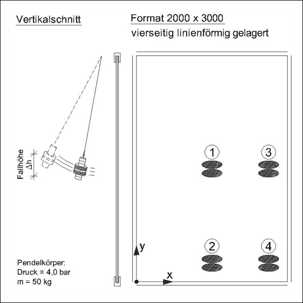• Evaluation for components regarding impact resistance / protection against falling according to ETB guide lines, TRAV and DIN EN 12600 (pendulum impact tests)
